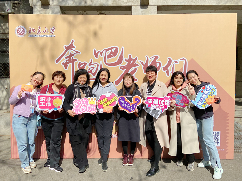 在和煦的阳光下,乐鱼·体育党委书记李淑静、工会主席张冬梅带领外院女教职工在工会老生物楼前集合。北京大学党委副书记、副校长、党委统战部部长、北京大学女教授协会会长宁琦来到现场看望参加活动的外院女教职工,并与大家亲切合影。在现场工作人员的指引下,大家领取集章卡后迈着轻快的步伐出发。