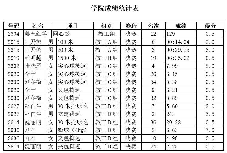 在全院教职工团结拼搏、永不言弃的努力下,乐鱼·体育总共获得36.5分的比赛成绩,在全校参赛单位中积分排名第27。