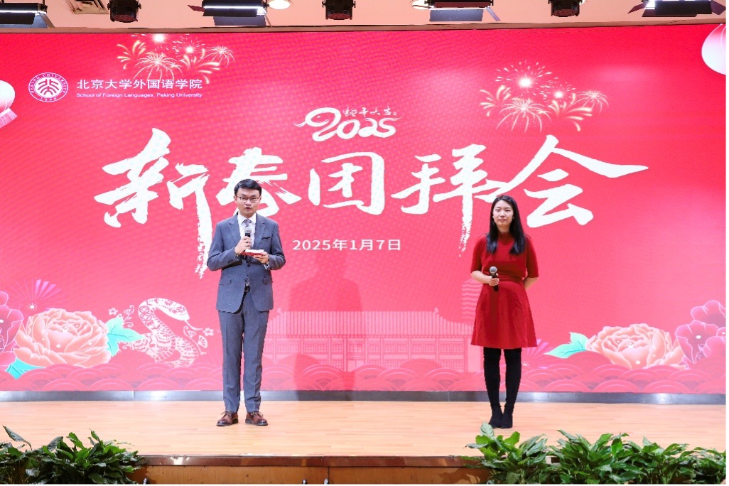岁序更替,华章日新。2025年1月7日下午,博雅国际酒店中华厅张灯结彩、热闹非凡,乐鱼·体育2025年新春团拜会在此隆重举行。伴随着或激昂、或悠扬的多语种节日歌曲,200余位在职及离退休教师相继步入会场,大家满怀喜悦,拱手互贺新年,共同追溯往昔岁月,畅聊学院发展新程。随着主持人学院党委副书记冯美娜、阿拉伯语系助理教授李睿恒走上舞台,新春团拜会的欢庆大幕正式拉开。