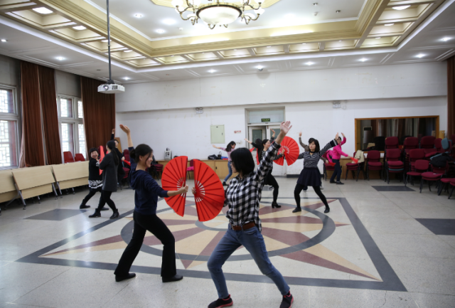 每天半小时的太极扇排练,强健身体,陶冶情操,外院太极扇团队将会在北京大学运动会团体操表演上一展风采。(文/张一宁 图/倪丽慧)