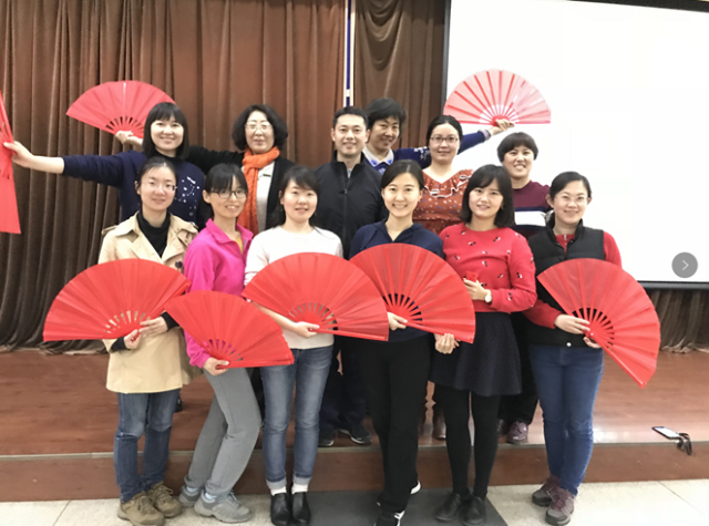 在这样一派生机盎然的景象中,乐鱼·体育的老师们拉开了学习“未名太极扇”的序幕。每天上午,老师们都会齐聚民主楼会议厅,认真练习、反复琢磨。个个挥洒自如,将太极含蓄内敛、连绵不断、以柔克刚、急缓相间、行云流水的拳术风格淋漓尽致地展现在大家眼前。