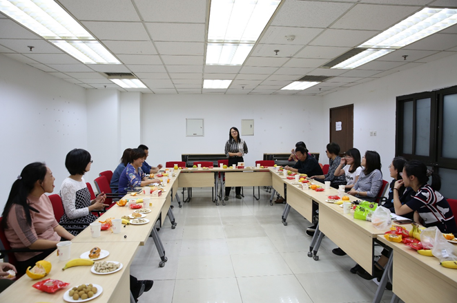 学院工会还为老师们准备了糕点、水果,以及健康可口的小食等,让各位老师在辛苦工作之余,感受到学院工会的关怀,共同度过了一段美好愉悦的下午时光。(文/潘桂英,图/郝赟)