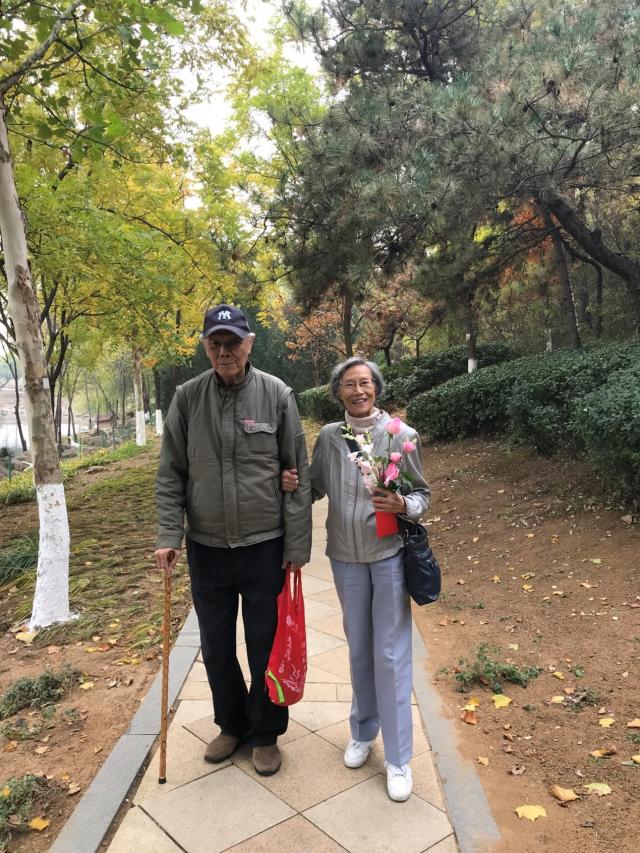 其实,那天最令大家陶醉的是踏上返程前一对老夫妇携手前行的身影,他们的亲密和乐观,自信和从容,感染了周围所有的人,构成景区之外一道独特的风景。手持鲜花的是英语系的王明珠老师,手挽着她的老伴----东南亚系的梁立基老师。梁立基老师今年已是91岁高龄,王明珠老师也已是88岁老人了,是我们外院秋游团队中最年长的一对。但他们的精神风貌,尤其是王老师,仍是那么神采奕奕、光彩照人,丝毫不输年轻人。拍照完毕,王老师高兴地伏在我耳边悄声说道:“明年就是我们的钻石婚了!” 让爱斐堡见证这美好的时刻,愿他们的爱情如酒浓香,似酒绵长,岁月不败。
