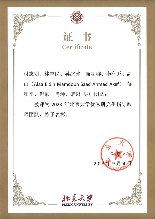 阿语系:付志明、林丰民、吴冰冰、廉超群、李海鹏、高山、蒋和平、倪颖、肖坤、袁琳导师团队,被评为2023年北京大学优秀研究生指导教师团队。