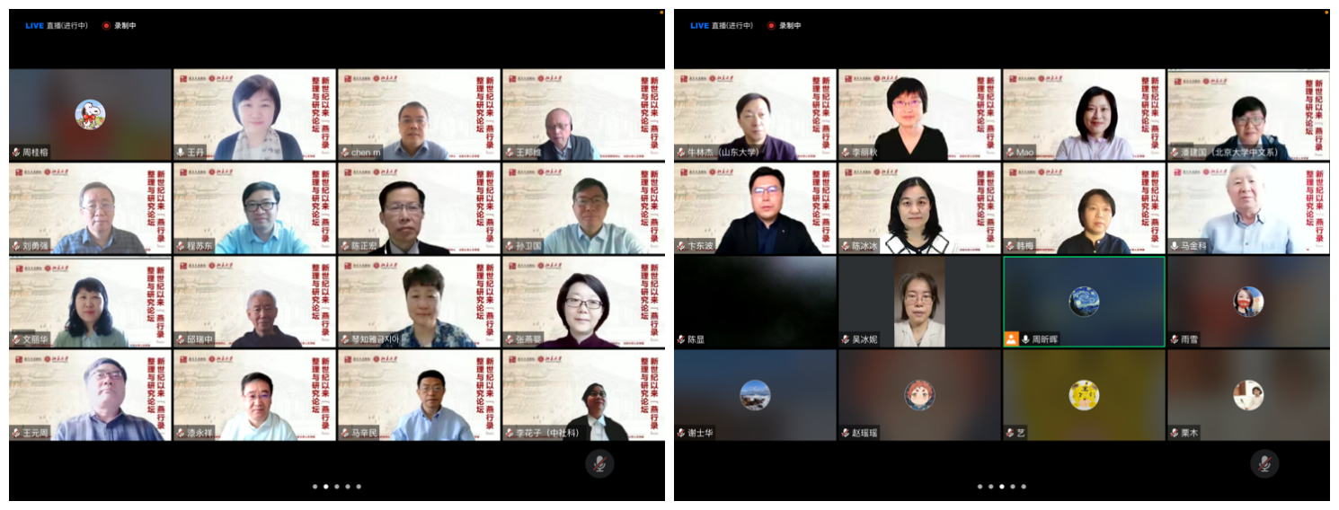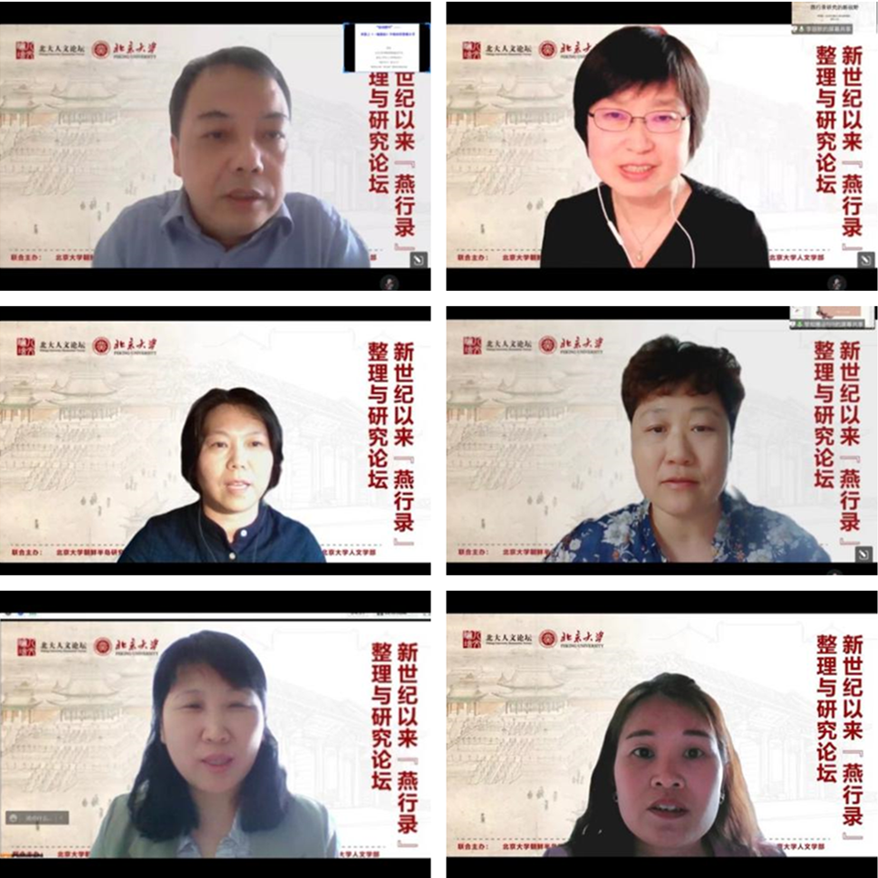 2022年5月15日,由北京大学朝鲜半岛研究中心、北京大学中国古典学平台、北京大学东方文学研究中心、北京大学人文学部联合主办的“新世纪以来《燕行录》整理与研究论坛”于线上举行。来自北京大学、中国社会科学院、复旦大学、南京大学、北京师范大学、山东大学、南开大学、北京外国语大学、北京第二外国语大学、内蒙古师范大学、延边大学、云南昆明学院等11所高校与研究机构,国家图书馆、北京大学出版社、中国农业博物馆等单位的近三十名专家学者与会发言,围绕“燕行录学”理论与方法、新世纪以来“燕行录”整理与研究得失、东方文学语言与历史文化研究、《燕行录千种解题》评价等展开了充分讨论。本次论坛共吸引了220余人在线参会。