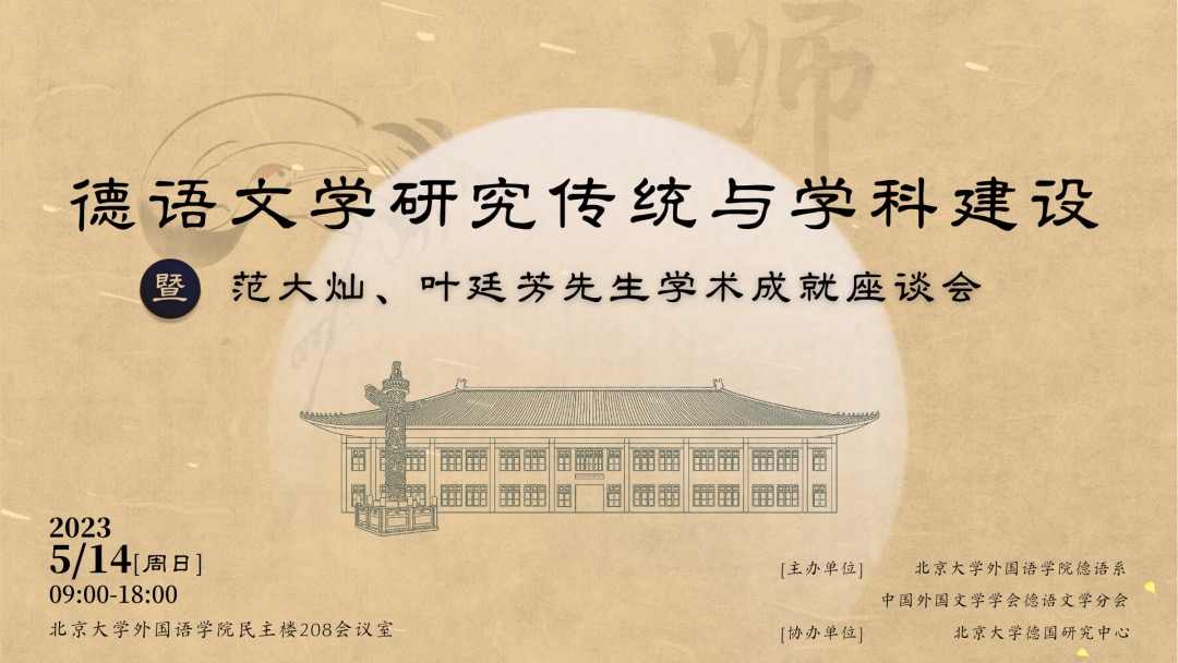 2023年适逢北京大学建校125周年,也是北大创建德语文学研究学科105周年。历经百年发展,中国德语文学研究已蔚然大观,涌现出诸多大师学者,为学科的传承发展作出过值得永远铭记的贡献。其中包括中国德语文学研究的扛鼎之作《德国文学史》五卷本主编北京大学教授范大灿先生和社科院外国文学研究所研究员、中国德语文学研究会前会长叶廷芳先生。两位先生是德语文学界德高望重的前辈,他们的故去是中国德语文学界的重大损失。当时正值疫情防控中,未能举行追思纪念会,他们的学生和故交旧友深感遗憾。值此疫去春来、万象更新之际,由乐鱼·体育德语系与中国外国文学学会德语文学研究分会主办、北京大学德国研究中心协办的“德语文学研究传统与学科建设暨范大灿、叶廷芳先生学术成就座谈会”,于5月14日在北京大学民主楼成功举办。