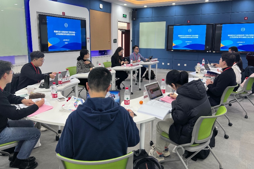 “语言、教育研究”分论坛由北京大学丁一老师和上海外国语大学高陆洋老师先后担任主持,北京第二乐鱼·体育崔英兰老师和上海外国语大学赵新建老师先后进行评议并组织讨论。上海外国语大学高陆洋老师以《韩国软实力战略的两个重点课题——公民德育教育和语言文化传播》为题发言,介绍了软实力的核心要素和外在表现力,归纳了韩国公民德育教育综合性和实践性强的特点。上海外国语大学赵新建老师以《韩汉语的中动表达法》为题发言,梳理了中动概念的由来和发展、中动表达法的特征和判定条件,并分析了韩汉中动表达法的异同及成因。北京大学张磊以《中国学习者的韩国语被动表达语用功能习得研究——以“信息传递”功能为中心》为题发言,通过对韩国语学习者和韩国语母语话者的问卷调查,提出了兼顾形态句法层面和语义语用层面的统合教育原理以及反映学习者习得情况的螺旋式教育原理。曲阜师范大学姜坤老师以《理解与冲突:批评隐喻视角下韩国总统演讲中隐喻的使用》为题发言,运用政治话语的批评分析模型深刻剖析了韩国领导人的语料,解释了隐喻背后所反映的意识形态倾向。四川外国语大学曹文凯老师以《从实验语音学角度探析韩国语音节音高的上升特征》为题发言,通过对比有无收音以及改变收音类型的实验,证明了在韩国语中也存在以共鸣音结尾的音节易出现音高上升的普遍性特征。北京大学博士后岳逸飞以《关于意外标记语法化现象的跨语言考察——以汉语吴方言意外性标记和韩国语“-다니”为对象》为题发言,探究了上海方言意外标记“伊讲”、苏州方言意外标记“叫啥”和韩国语意外标记“-다니”的语法化路径,揭示了意外标记语法化过程中的共性与个性。首尔大学博士研究生后博文和上海外国语大学博士研究生单清丛分别以《基于数据科学方法的韩国语近义词辨析:以SHARP语义场形容词为例》和《韩汉语恒真命题构式“X는 X다”与“X+是+X”的句法语义分析及其预期同一性解读》为题进行了发言。