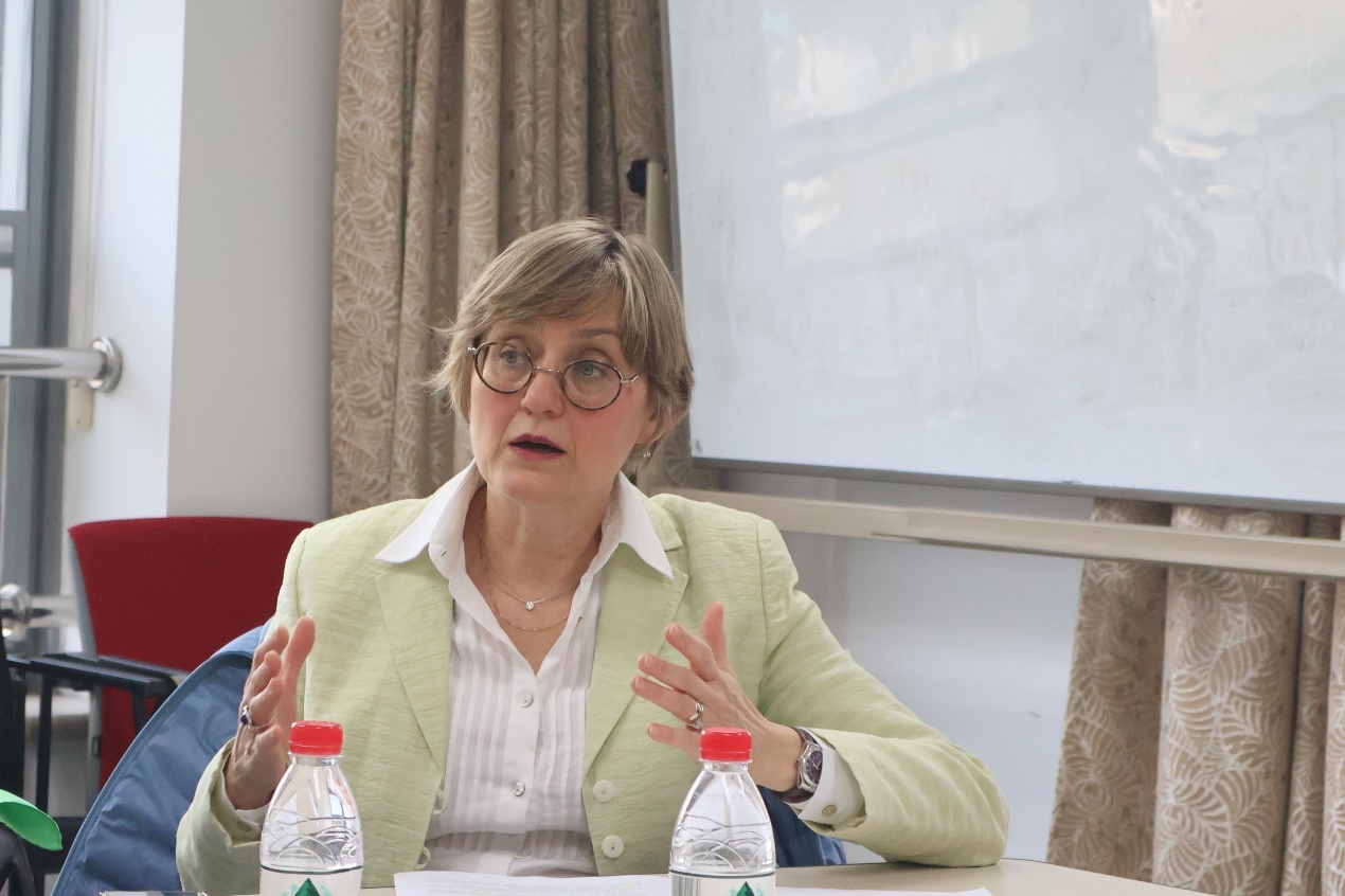 讲座伊始,施越助理教授介绍了主讲人的基本情况。主讲人斯维特兰娜·戈尔舍尼娜是资深中亚研究学者,历史学博士,法国国家科学研究中心/索邦大学东欧、巴尔干和中欧文化和社会实验室(Cultures et sociétés d'Europe orientale, balkanique et médiane, EUR’ORBEM)主任。她熟练掌握俄语、法语、德语、英语等语言,早年师从苏联中亚考古学界著名学者加琳娜·普加琴科娃(Galina Pugachenkova),发表出版论著数十篇,长期在乌兹别克斯坦撒马尔罕、塔什干等地开展实地研究,具有丰富的档案研究和文化遗产保护的工作经验。