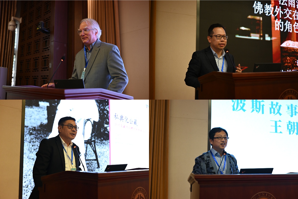 Following the opening ceremony, Professor Wang Changwei presided over the keynote speech session, during which Professor Kenneth Dean, Director of the Yun Mao Chao Chinese Culture Research Centre at the Department of Chinese Studies, National University of Singapore, presented on "Chinese-language Documents in Maritime Asia and Digital Humanities," summarizing folk documents preserved by Southeast Asian Chinese communities and introducing his team's latest achievements in multilingual document collation and digital platforms. Associate Professor Xie Mingda from the Department of History at the National University of Singapore delivered a speech titled "Dharma Rain Nourishing Neighbors: The Role and Significance of Buddhist Diplomacy in China-Singapore Relations," illustrating the unique role of Buddhist diplomacy in secular state practices through case studies such as Venerable Hong Choon's visits to China and the art exhibition "The Secret of the Collapsed Stupa". Professor Chen Ming presented on "Journey to the Southern Ocean: Chinese Buddhist Monks' Quest for Dharma and Propagation of Teachings during the Republican Period," organizing firsthand archival materials on Chinese monks' travels to South and Southeast Asia, thereby revealing the historical and cultural significance of Buddhism's southward transmission in civilizational exchange. Mr. Shen Junping, Deputy Director of the National University of Singapore Libraries, spoke on "Transforming Private Collections into Public Resources: Hsu Shao-nan's Book Donation and its Contribution to the Sinological Academic Ecosystem in Singapore," reviewing Hsu Shao-nan's efforts in collating Chinese academic materials and highlighting the significant impact of his donation of over 7,000 volumes on Sinological research and China-Singapore academic exchange. And Professor Jin Yong, Tenured Associate Professor and Associate Head of the Department of Southeast Asian Studies at the School of Foreign Languages, Peking University, discussed "Persian Narratives and the Political Culture of the Ayutthaya Kingdom in Thailand," exploring Persian cultural influences on Thai court literature and noting that "The Twelve Tales of the Iranian Kingly Way" was adapted by Thai court literati into a Buddhist-inspired book of admonitions, reflecting political dynamics between the monarchy and nobility.