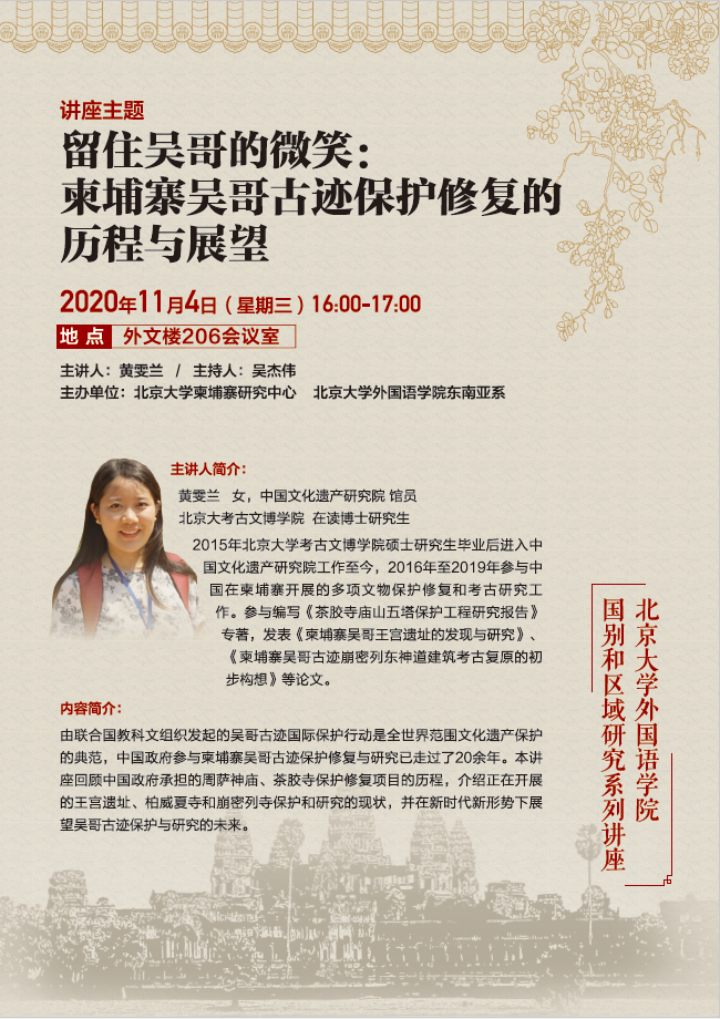 国别和区域研究系列讲座预告:柬埔寨吴哥估计保护修复的历程与展望