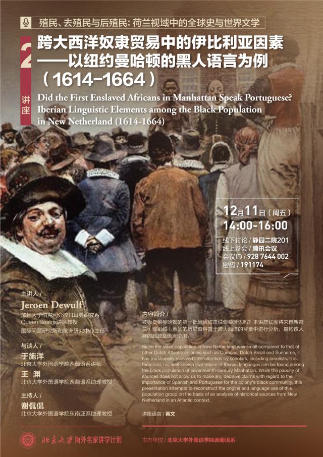 北京大学海外名家讲学计划:跨大西洋奴隶贸易中伊比利亚因素——以纽约曼哈顿的黑人语言为例