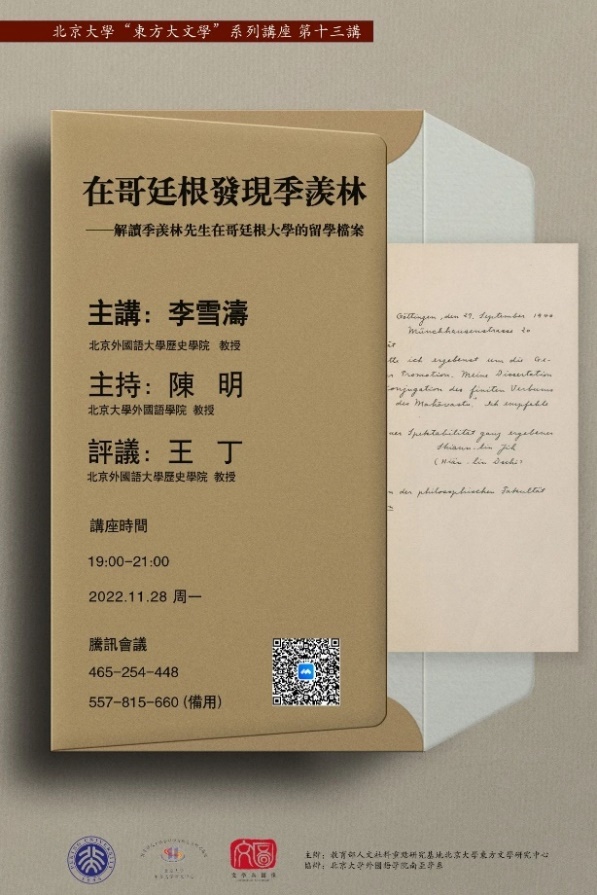 北京大学“东方大文学”系列讲座第十三讲:在哥廷根发现季羡林 讲座预告