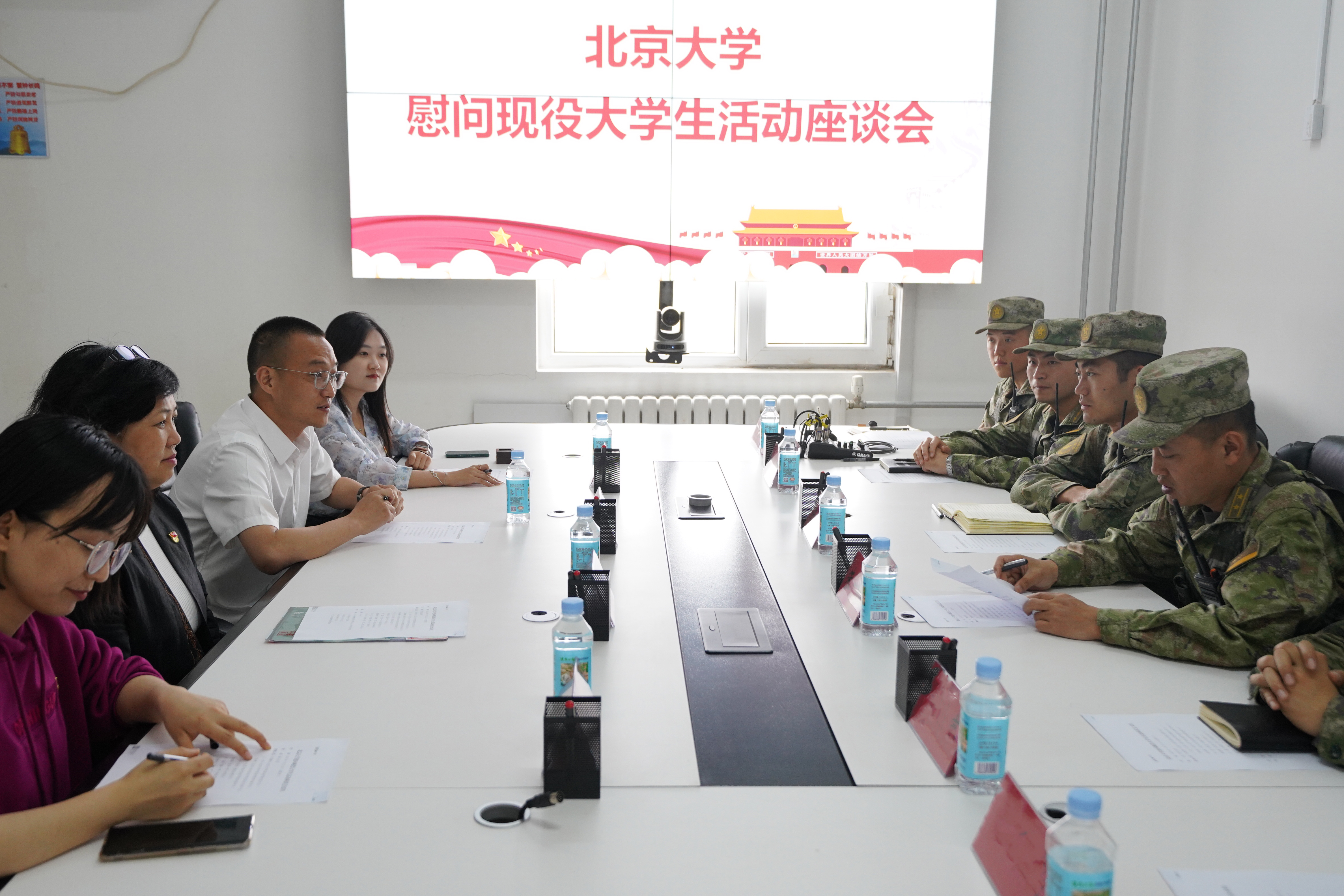 参观结束后,学院老师与部队领导在驻地会议室召开了座谈会。部队领导首先对乐鱼·体育老师的到来表示欢迎,对学校和学院大力支持国防事业、关心支持大学生参军入伍、为军队源源不断输送高素质人才的做法表示肯定与感谢。同时,部队领导还向老师们详细介绍了孙圣杰入伍以来在部队的各方面表现,强调孙圣杰在思想政治、业务技能、个人作风等方面均表现优异,展现出了北大学子的风采与担当,为战士们树立了良好的榜样。
