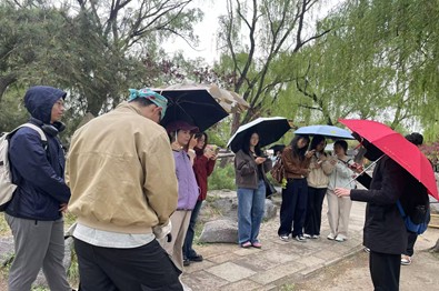 当日上午,同学们在老师的带领下依次参观了鉴碧亭、含经堂、海晏堂、大水法等标志性遗迹。尽管当日正下着小雨,但同学们的学习热情却丝毫不减。