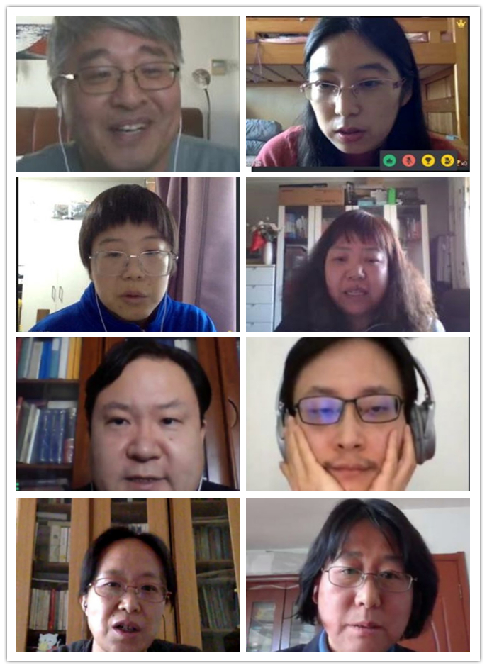 大学英语教研室和研公英教研室的几位老师交流了组织全校公共英语课程在线教学的体会。马小琦老师介绍了大英教研室外教的远程授课情况。特殊时期,许多外教身处国外,克服时差和技术的困难,通过Canvas、微信群、邮件等各种途径兢兢业业地授课、辅导,此外还随时与学生分享图片、视频,介绍所在国风土人情和文化习俗,可谓意外收获。许娅老师分享了她收集的学生对线上教学方式和考核方式的意见反馈。王爱华老师讲述了她使用Zoom直播平台授课的心得。