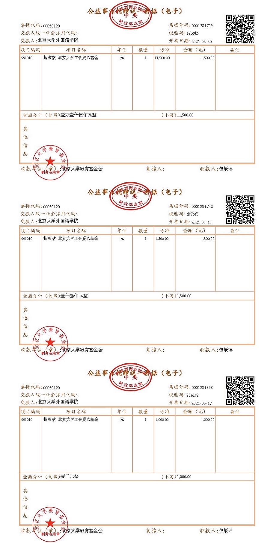 今年3月15日,在一年一度学习和弘扬雷锋精神的日子里,北京大学校工会发起了新一年的《爱心永在,关爱无限——爱心基金捐赠倡议书》。乐鱼·体育工会秉承优良传统,积极响应校工会的宣传和倡导,并得到了学院教职工一如既往的大力支持。截至4月底集中捐赠的结束日期,学院共收到41位老师的爱心捐款,金额共计13800元人民币。