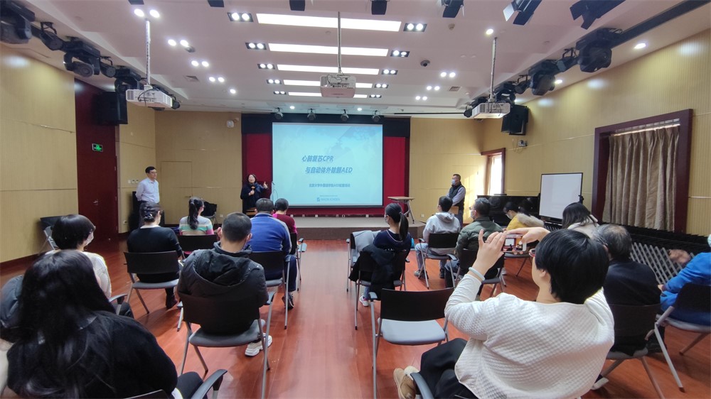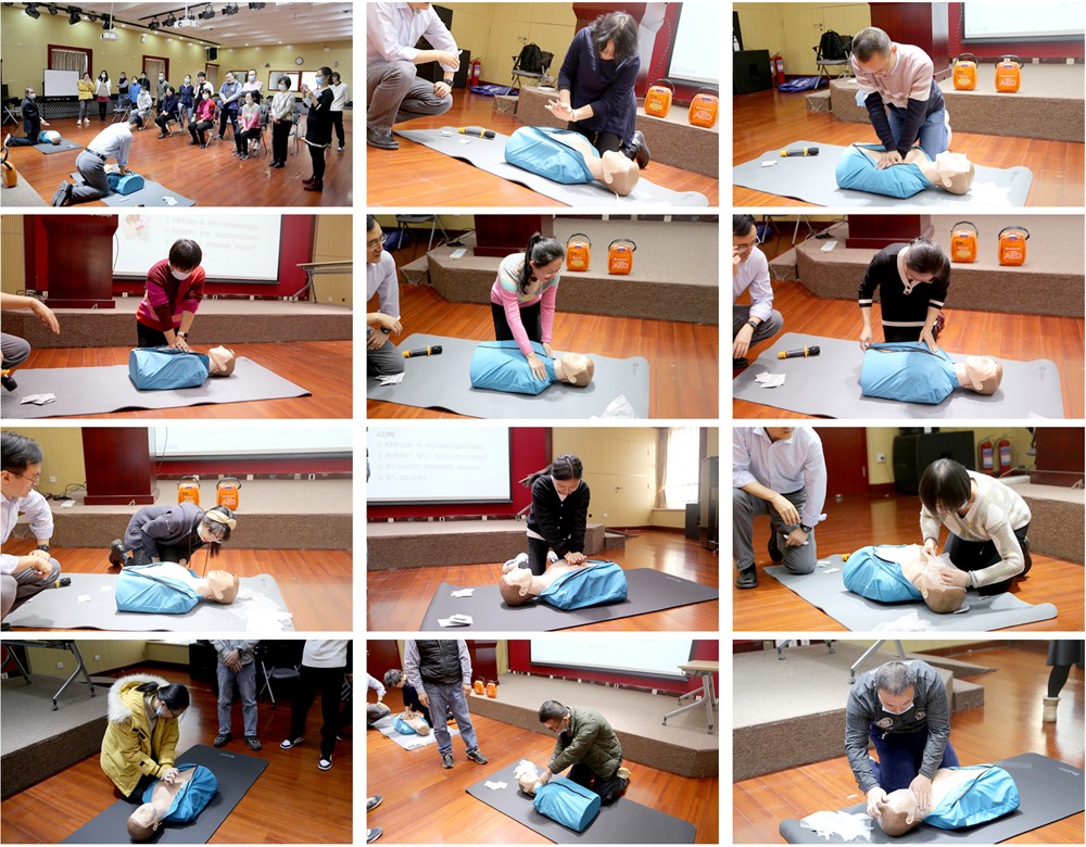 培训开始前,工会主席张冬梅老师介绍了此次培训的意义。在公共场所配备必要的急救设备,是国家建立健全突发事件卫生应急体系的需要,正在成为检验城市文明水平和基础设施是否完备的新标尺。学院工会一向高度重视安全问题,本学期购置了自动体外除颤仪(以下简称AED),放置于外院新楼一层大厅。心肺复苏术、AED操作方法都是普通人通过培训可以掌握的,开展急救培训,提高相关人员对急救术的掌握率,是争取黄金抢救时间的可行之法。本次特别邀请专业团队带来心肺复苏、AED使用的技能培训,希望大家高度重视、认真学习,增强公众急救意识,掌握急救技能,在紧急关头为学院师生提供切实的帮助。