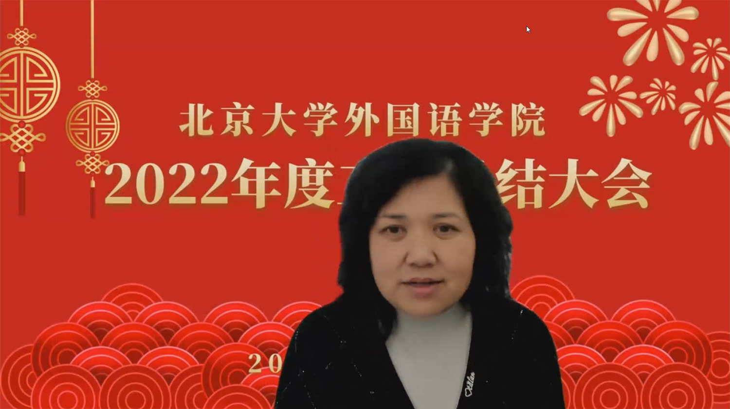 党委书记李淑静对学院过去一年的党建工作进行了全面总结。学院坚持党建统领全局,在上级党委的坚强领导下,积极学习宣传贯彻党的二十大精神和学校第十四次党代会精神,严格落实各项战略部署;各党支部充分发挥战斗堡垒作用,高质量完成各项工作任务。学院面向全体师生开展多形式、分条线、全覆盖的教育培训,结合学院业务实际解读党的二十大报告,推动党的二十大精神深入人心。学院高度重视课程思政建设,采用点面结合、层层推进的工作方法落实课程思政建设各项要求,提升课程思政建设质量水平,以北京大学课程思政示范院系建设立项为契机,启动外国语言文学类专业课程思政教学设计编写工作。学院在高端翻译人才培养和国际传播能力建设方面争当排头兵,与中央党史和文献研究院第六研究部签署共建协议,创建“高端翻译人才培养基地”,实现优势互补、资源共享。她表示,全院党员在领会践行党的二十大精神、保障师生身体健康和正常学习生活秩序、服务“双一流”建设与国家发展战略等方面充分发挥党员先锋模范作用,自觉行使好党和人民赋予的权力、完成好党和人民交给的任务。愿新的一年,外院全体党员矢志不渝、笃行不怠,在充满光荣和梦想的远征中奋力奔跑。