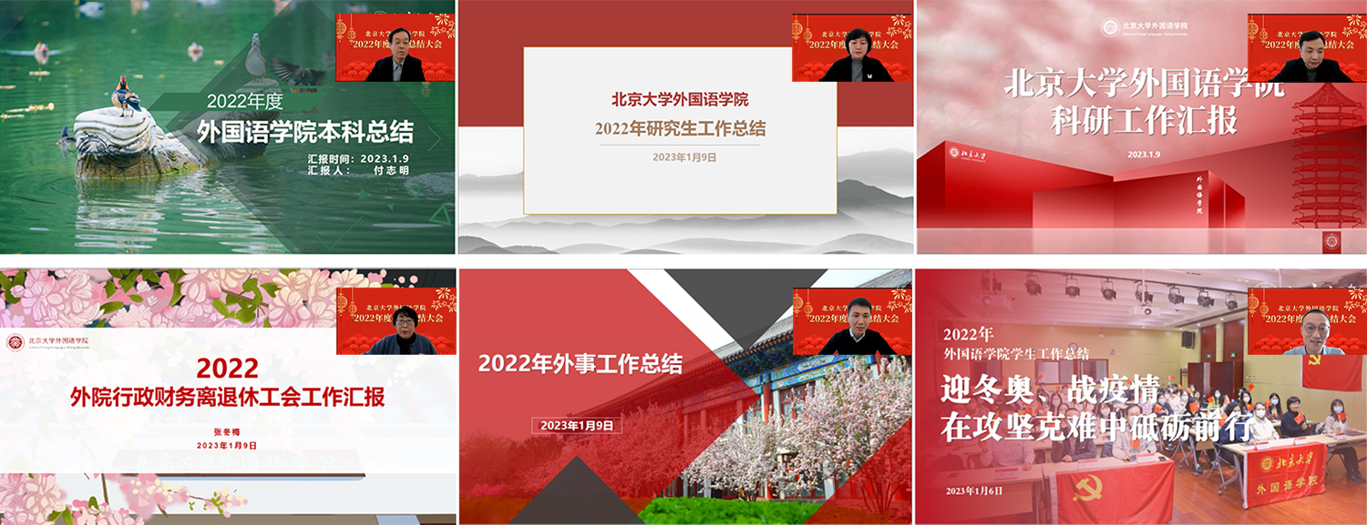 院长陈明对学院全年的工作进行了总结。2022年,学院师生团结一心、共克时艰,各项工作稳步推进,取得了优异的成绩。学院紧抓放权改革机遇,编制《外国语言文学学科放权改革方案》,明确了北大外语学科的阶段性建设目标。学院坚持党对人才工作的全面领导,深化教师人事制度改革,制定《乐鱼·体育人才发展战略》,系统开展引才、育才、选才工作,多措并举、强化引领。打造“院长茶座”“青年教师座谈会”“学科建设沙龙”等品牌活动,促进青年教师职业生涯发展。在教育部第五轮一级学科评估中,北大外语学科保持领先,翻译专业学位在全国专业学位水平评估中表现优异,彰显了学院的引领地位。申丹教授荣聘中国人力资源保障部批准聘任的国家文科一级教授,段晴教授领衔的“东方语言文化教师团队”入选教育部第二批全国高校黄大年式教师团队,赵振江教授荣膺中国翻译界最高荣誉“翻译文化终身成就奖”……无数荣誉的取得无不体现着学院教师深厚的积累与持续的爆发力,以及学院风清气正、勠力同心的学术生态。他希望新的一年,全院教师能够精诚合作、团结一心、各尽其能,共同谱写北大外语学科发展的新篇章。
