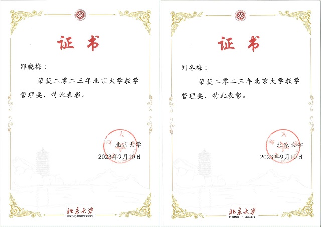 邵晓梅、刘冬梅老师荣获2023年北京大学教学管理奖。