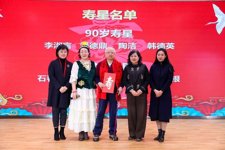 2026年,外院共有4位90岁寿星和4位80岁寿星,党委书记李淑静带领学院领导班子向这些可亲可敬的老寿星们恭祝寿诞。学院取得的每一项成绩,都离不开广大离退休教师数十年如一日的付出与支持。李淑静带头领唱生日快乐歌,衷心祝愿寿星教师们松鹤延年、幸福安康。在温馨的旋律中,学院领导班子成员为寿星们轻轻系上红围巾,并送上寿诞贺礼与新年祝福。