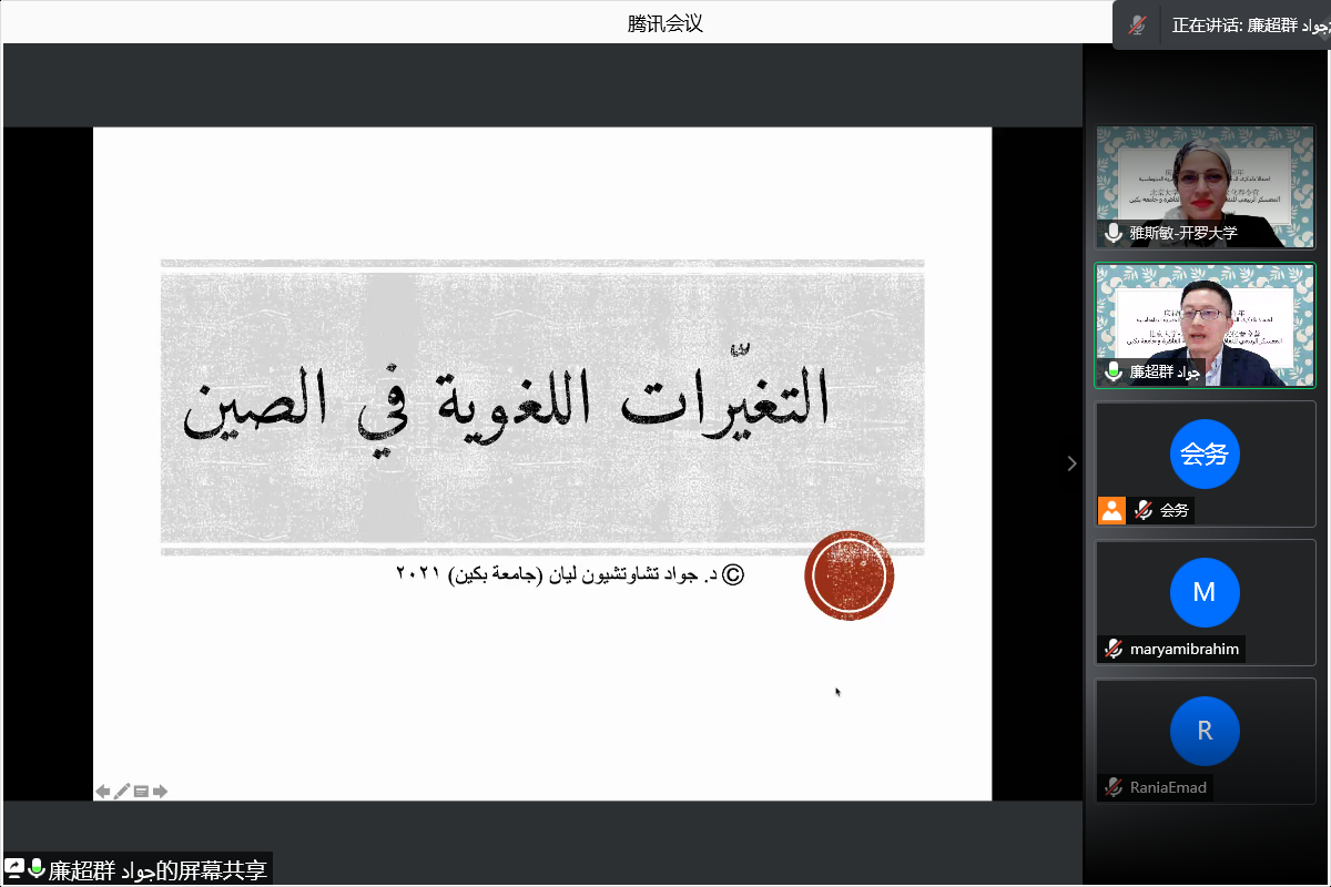 开罗大学校长顾问、中文系主任、孔子学院院长李哈布(Rehab)老师,开罗大学孔子学院中文系李玉(Rehab)老师,乐鱼·体育阿拉伯语系的付志明教授、廉超群副教授、袁琳老师参加了春令营活动闭幕仪式,闭幕式由廉超群副教授主持。