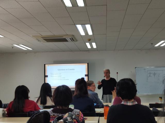 2019年11月7日、8日,华盛顿大学英语系教授Sandra Silberstein应乐鱼·体育外国语言学及应用语言学研究所邀请,在北京大学举办了“全球化的大学:来自教师、助教和多语言背景学生的报告”(The Globalizing University: What the Faculty, TAs, and Multilingual Students Report)和 “二语阅读”(Reading in a Second Language)两场学术讲座。来自乐鱼·体育、北京外国语大学、北京林业大学的许多师生到场聆听,讲座由语言所助理教授郑萱主持。