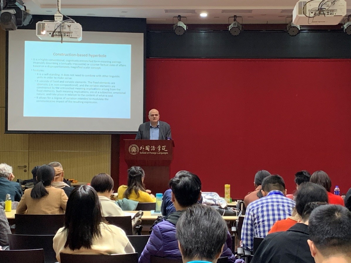 2019年11月8日,由北京航空航天大学主办、北京大学等高校协办的第十九届中国认知语言学国际论坛(CIFCL)第十讲,暨乐鱼·体育语言学沙龙第578期,在乐鱼·体育新楼501举行。本次论坛邀请到了瑞士纳沙泰尔大学的Martin Hilpert教授和西班牙拉里奥哈大学的Francisco José Ruiz de Mendoza Ibáñez教授,讲座的题目分别为“结构变化和分布语义”(Constructional Change and Distributional Semantics)、“夸张意义建模”(Modeling Hyperbolic Meaning)。