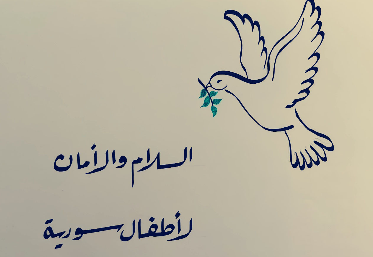 经过一星期的刻苦练习,3月26日下午,歌曲录制正式开始。“我们的心跳重新获得生命的活力,我们的脸庞将焕发光彩并点亮这长夜的黑暗”,从外文楼前的海棠树下,到未名湖中的石舫之上,阿语班的同学们将和平之声唱响整个校园。同学们的歌声是真情的流露,是热切的期盼,“我们的歌声虽然渺小,但也代表了我们对于和平的向往,希望可以为和平之路上洒上一些微光。”万毅成同学说。除了录制歌曲之外,同学们分别以阿文书法和绘画的形式表达了对叙利亚儿童、对叙利亚人民的美好祝愿,王心怡同学画下了飞向叙利亚朝霞的和平鸽,许政哲和王笛同学则用阿语写下了“愿叙利亚的孩子们被温柔以待”;同学们还纷纷用阿语呼喊出了自己内心对和平的希望:“我衷心地希望可爱的叙利亚的孩子们早日回归和平美好的生活”“我真诚地祝愿叙利亚早日恢复和平,祝愿叙利亚人民安康快乐”……