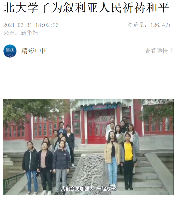 唱响和平之歌,描绘美好愿景——北京大学阿拉伯语系学子通过视频为叙利亚人民祈祷和平