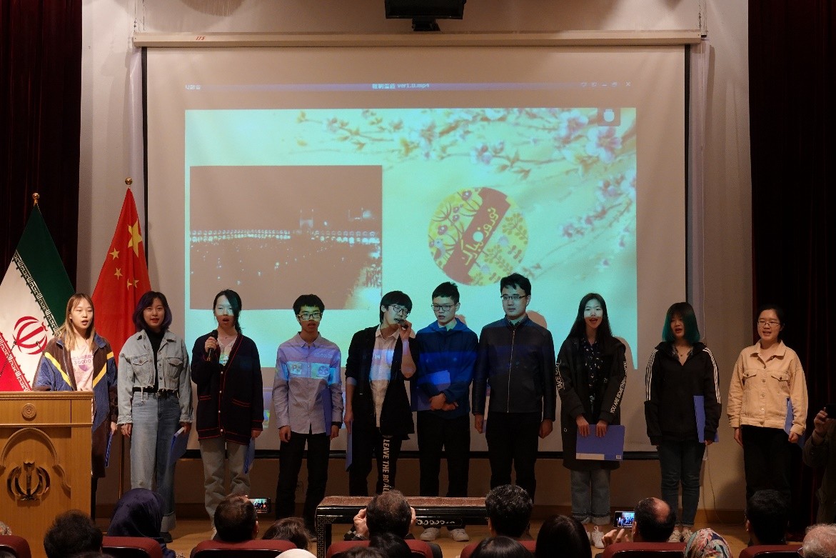 随后,本校波斯语专业全体在校生登台献唱一首波斯语歌曲,并朗诵一首哈菲兹的古典抒情诗,二者共同的主题是歌颂春天的到来。