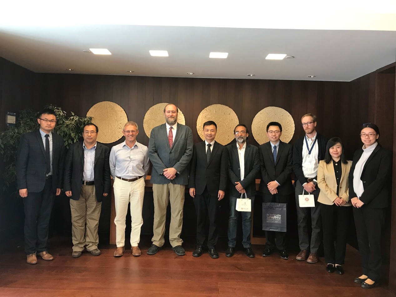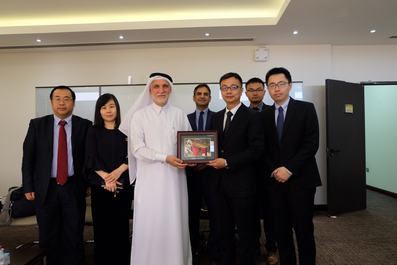 4月17日至20日在卡塔尔访问期间,代表团第一站参访机构为卡塔尔大学。卡塔尔大学副校长达尔维什•阿卜杜拉赫曼(Darwish Abdulrahman H. Al-Emadi)、副校长欧麦尔•安萨里(Omar Al-Ansari)、副校长哈立德•哈提尔(Khalid Al-Khater)和国际事务处处长凯撒•沃曾(Cesar Wazen)接见了团队师生。北京大学卡塔尔讲席教授吴冰冰博士首先向卡塔尔大学方面介绍了卡塔尔讲席在北京大学的运作现状和未来的发展规划,以及乐鱼·体育国别和区域研究专业的基本情况,副校长达尔维什对此给予了肯定与赞赏。双方还表示,希望能够进一步扩展北京大学与卡塔尔大学的合作空间,在继续夯实和加强卡塔尔大学与乐鱼·体育合作的基础上,充分发挥两所大学的综合性优势,寻求两校在医学研究领域的合作空间。会谈结束后,团队师生在工作人员的带领下参观了卡塔尔大学校园。