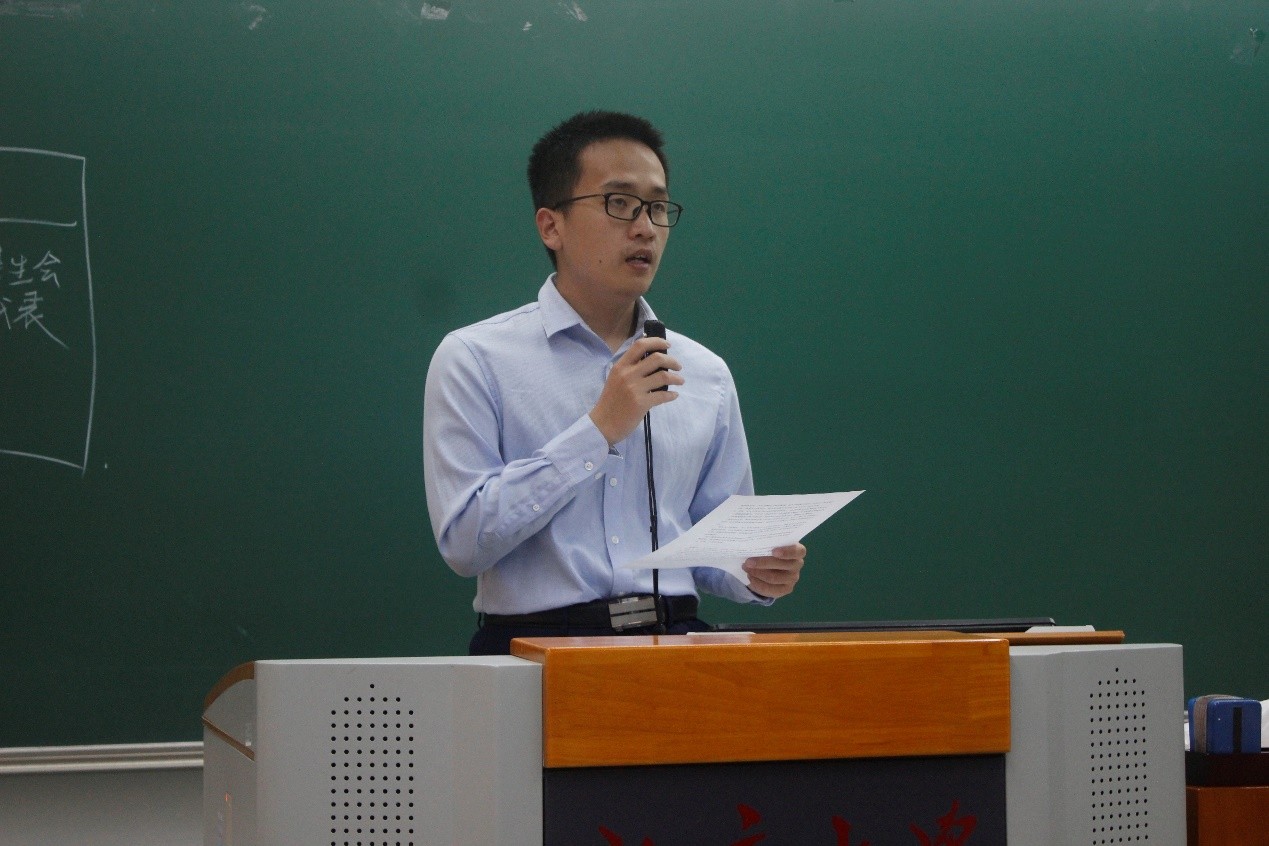 常务代表委员卢赫代表常代会作工作报告,他介绍了自己过去一年中在北京大学常务代表委员会中所做的工作,为全体师生的利益发声,为改善北京大学校园内的学习生活条件广纳建议,并取得了实质性进展。报告结束后,卢赫接受了全体代表的质询,工作报告在掌声中获得通过。