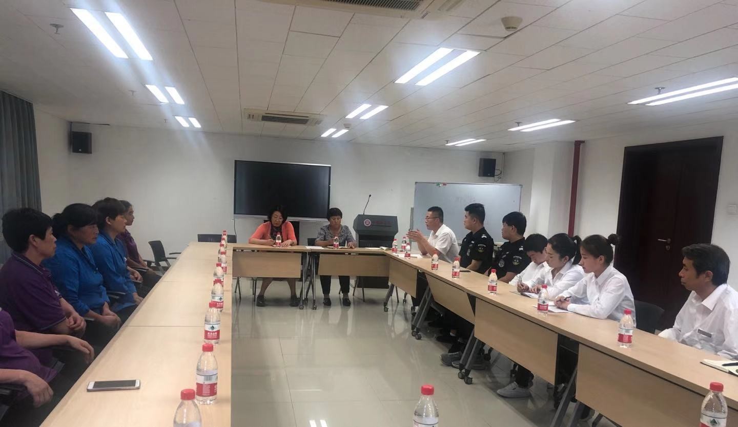 2019年9月25日下午,国庆假期前夕,学院在新楼301会议室召开了物业安保工作会。学院主管安全工作的张冬梅副院长,学院办公室倪丽慧主任、李卉老师,瑞杰物业韩柳杨经理及近20位物业员工参加了会议。