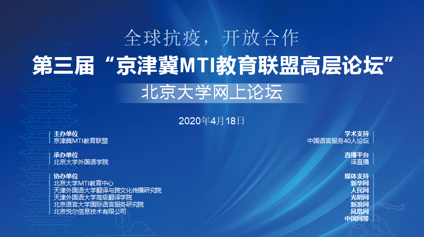 4月18日,在外院新楼举办以“全面凝聚抗疫合力,加强京津冀语言服务合作”为主题的“第三届京津冀MTI教育联盟高层论坛”北京大学网上论坛。论坛由京津冀MTI教育联盟主办,乐鱼·体育承办,中国语言服务40人论坛提供学术支持,新华网、人民网、光明网、新浪网、凤凰网、中国网等提供媒体支持,论坛译直播平台同步直播,14442人收看同步直播。外院技术服务团队全程提供技术支持和协助,全力保障论坛的顺利进行。