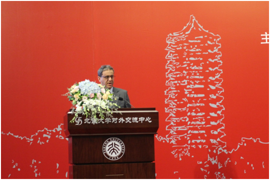 阿曼驻华使馆公使阿里·达尔麦吉代表阿曼驻华大使致辞。阿里公使指出,阿拉伯语历史悠久、使用广泛,世界各地都在踊跃学习阿拉伯语,而中国,作为一个与阿拉伯世界自古以来交往不断的国家,也十分重视阿拉伯语。阿里公使高度评价了北京大学阿拉伯语系近年来在国际合作、人才培养和文化交流方面所做出的努力,并对从北京大学走出来的高水平阿语人才给予了肯定。