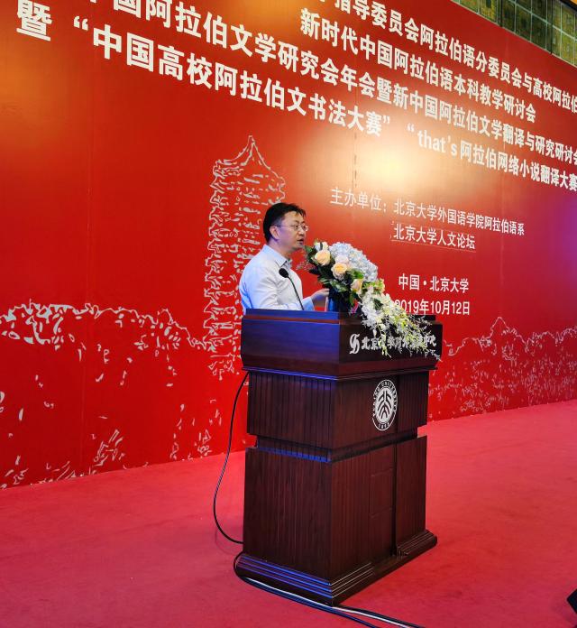 2019年10月12日,2019年教育部高等学校外语专业教学指导委员会阿拉伯语分委员会与高校阿拉伯语专业负责人联席会议与中国阿拉伯文学研究年会开幕式在北京大学隆重召开,阿曼驻华使馆公使阿里·达尔麦吉先生,乐鱼·体育党委书记李淑静教授,教育部高等学校外语专业教学指导委员会阿拉伯语分委员会主任委员、北京语言大学罗林教授,中国阿拉伯文学研究会会长、上海外国语大学蔡伟良教授以及来自全国51所高校的阿拉伯语专业负责人和全国文学研究的知名学者约120人参加了此次盛会。开幕式由乐鱼·体育副院长付志明教授主持。