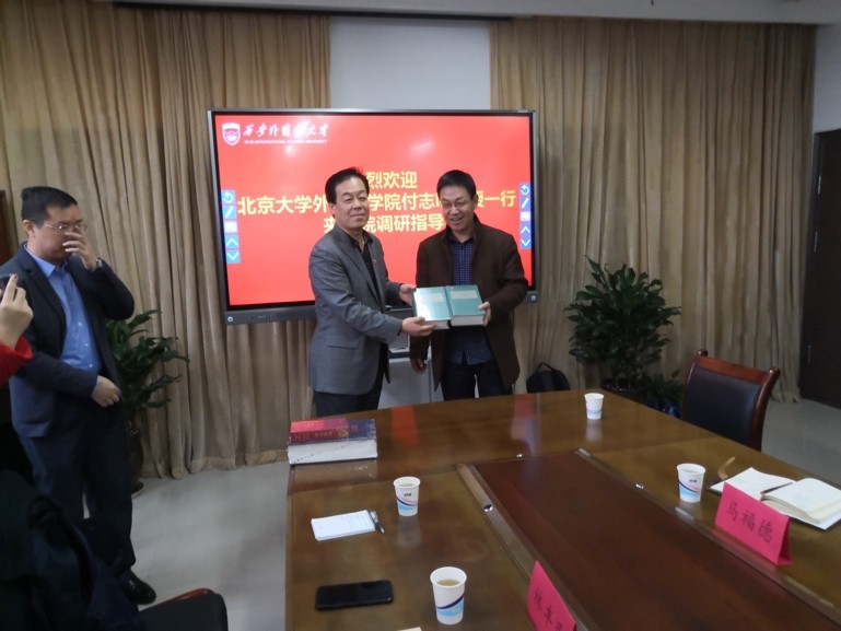 2019年11月24日,乐鱼·体育代表团访问西安外国语大学东方语言文化学院。在座谈会上,西安外国语大学东语学院院长马福德教授首先对乐鱼·体育代表团一行的来访表示热烈欢迎,并向在座师生介绍了参加座谈会的西安外国语大学的领导和教师代表。乐鱼·体育副院长付志明教授介绍了北京大学代表团一行成员,并对西安外国语大学姜亚军副校长的莅临表示感谢。