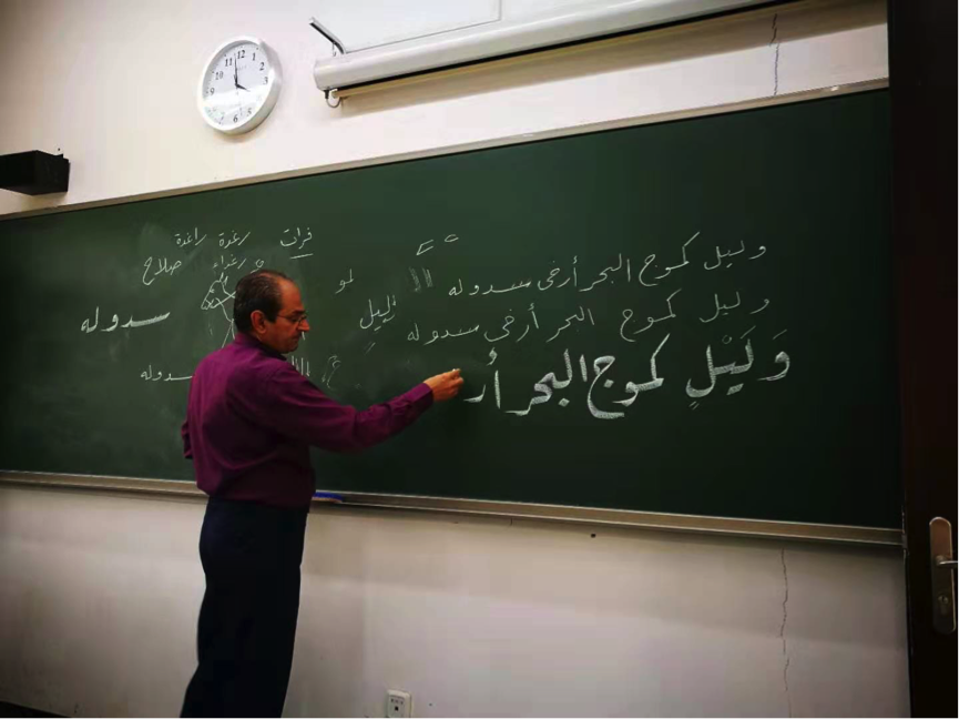 该课程由叙利亚籍外教哈穆德教授与乐鱼·体育付志明教授共同负责,哈穆德教授在日常课程中负责教授字体的书写练习,付志明教授则负责提供意见,联系专业书法家对选课学生进行针对性的答疑解惑。