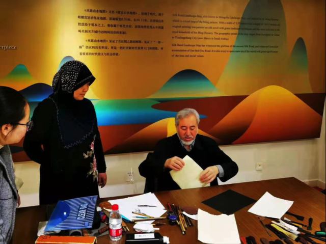 2019年12月13日上午9时,著名阿拉伯文书法家米广江应邀,在阿卜杜勒•阿齐兹国王公共图书馆北京大学分馆内举行阿拉伯书法专题讲座。