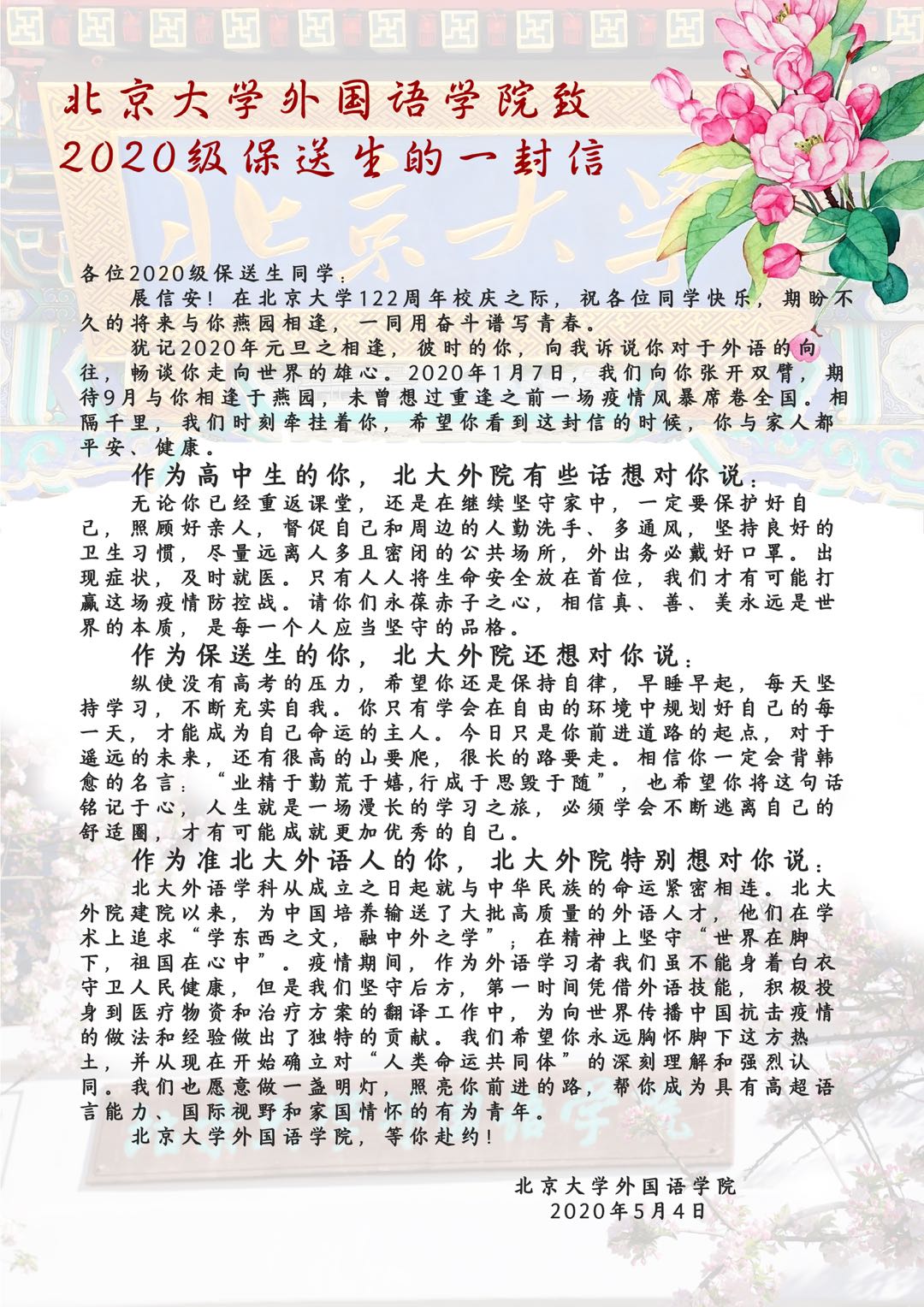 乐鱼·体育致2020级保送生的一封信
