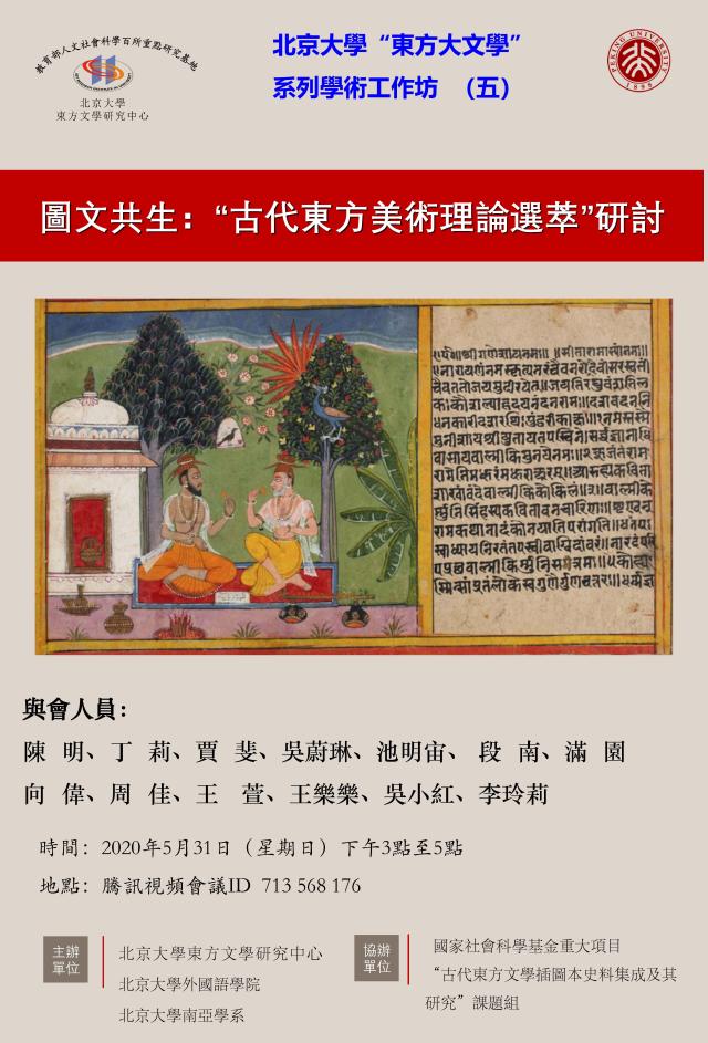 2020年5月31日下午,北京大学“东方大文学”系列学术工作坊第五次活动——“图文共生:古代东方美术理论选粹”研讨会,采用腾讯视频会议形式,顺利召开。该会议由教育部人文社科重点研究基地北京大学东方文学研究中心、乐鱼·体育、北京大学南亚学系共同主办,是国家社会科学基金重大项目“古代东方文学插图本史料集成及其研究”课题组的系列活动之一。来自北大、对外经济贸易大学、中山大学、北京科技大学、土耳其伊斯坦布尔大学的十余名课题组成员参与了此次研讨。