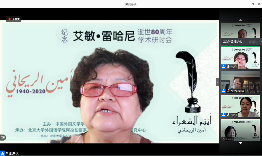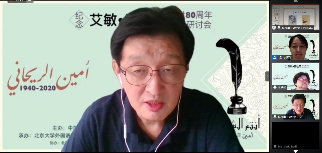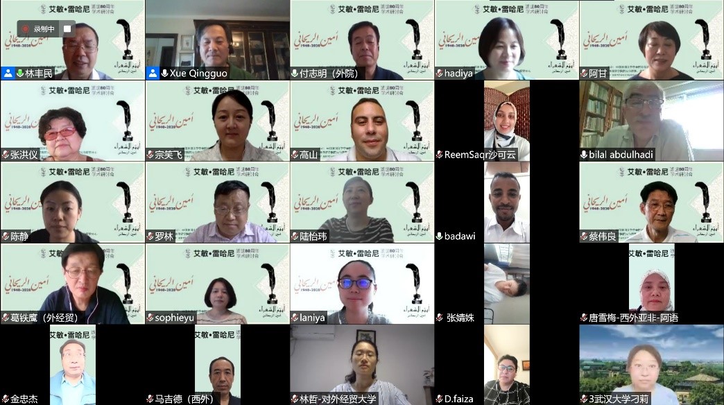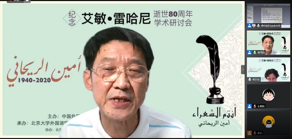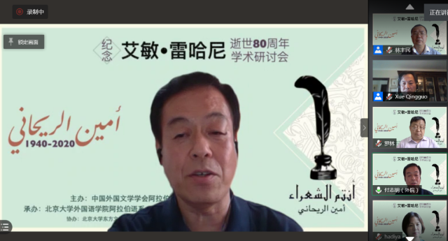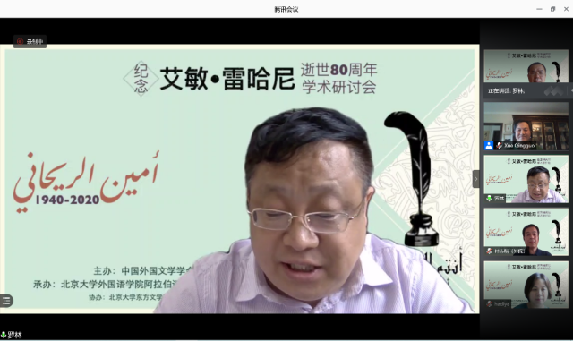 2020年8月29日,由中国阿拉伯文学研究会主办,乐鱼·体育阿拉伯语系和北京语言大学阿拉伯研究中心共同承办,教育部人文社会科学重点研究基地北京大学东方文学研究中心和北京大学中东研究中心协办的“艾敏•雷哈尼逝世八十周年纪念研讨会”拉开帷幕,来自北京大学、南开大学、中山大学、北京外国语大学、北京语言大学、对外经济贸易大学、上海外国语大学、天津师范大学、中国社会科学院外国文学研究所、黎巴嫩大学、苏丹喀土穆大学等国内外高校和科研单位的80名学者和研究生参加了这一场云端的思想盛宴。开幕式主持人薛庆国教授提到,艾敏•雷哈尼作品在国内研究较少的现状,可以通过雷哈尼的作品更好地理解黎巴嫩如今的局势。今年恰逢阿拉伯之春爆发10周年,雷哈尼的作品不仅具有预见性,我们也能从中抽丝剥茧地探寻解决当今阿拉伯世界众多问题的答案。