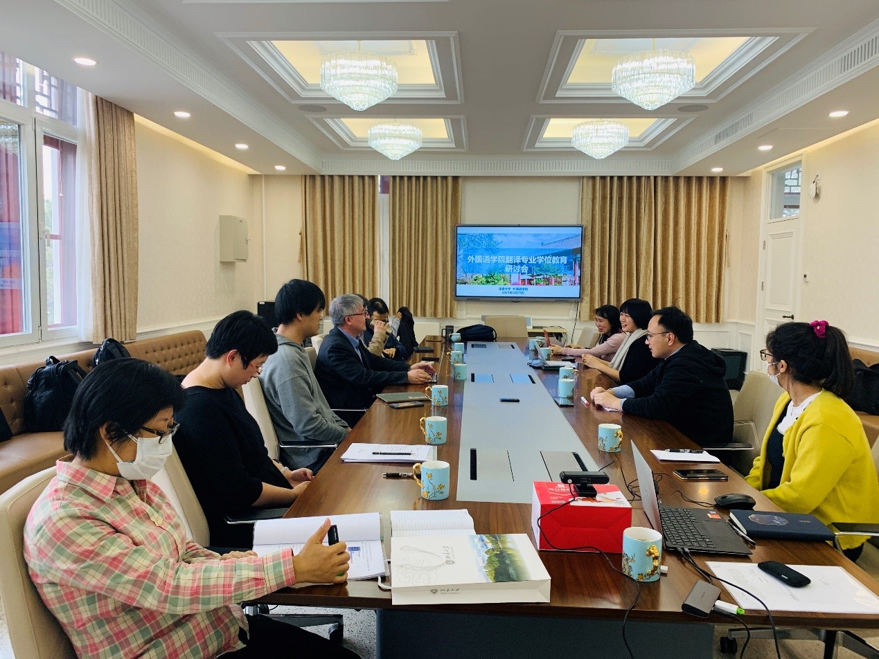 学院党委书记李淑静老师、教学副院长王丹老师、日语翻译专业负责人马小兵老师、日语系系主任孙建军老师、MTI教育中心主任林庆新老师、副主任丁林棚老师以及分别来自英语系、日语系的翻译专业学位任课教师刘璐老师、岳远坤老师、葛奇蹊老师,以及教务办公室的崔桂红、刘冬梅老师及教辅人员杜晓梅、郝赟老师等出席会议。会议由王丹副院长主持。
