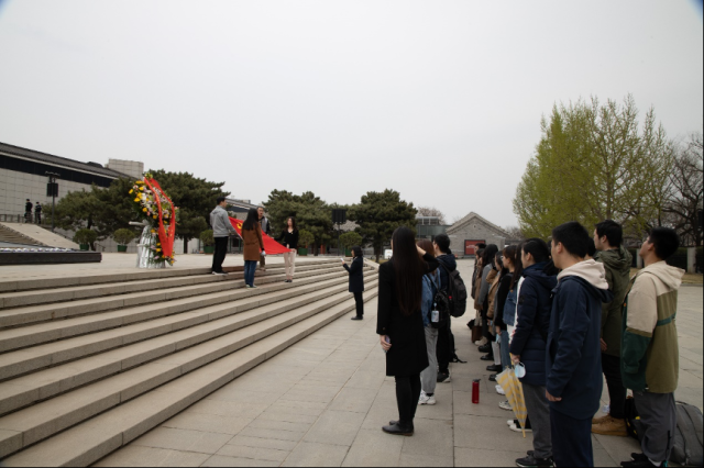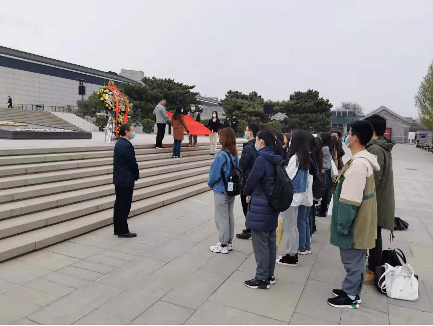 随后,在中国人民抗日战争纪念馆副馆长董立新和乐鱼·体育院友吕曦的带领下,师生来到抗战馆进行实地学习。清明时节寄哀思,在董馆长的指引下,师生在独立自由勋章雕塑前向先烈默哀致敬。董馆长表示,在建党一百年的关键历史节点,我们当代中华儿女应当“缅怀英烈志 奋进新征程 ”, 在缅怀先烈、寄托哀思的同时,更应当砥砺奋进,在新的一百年中创造新的辉煌。