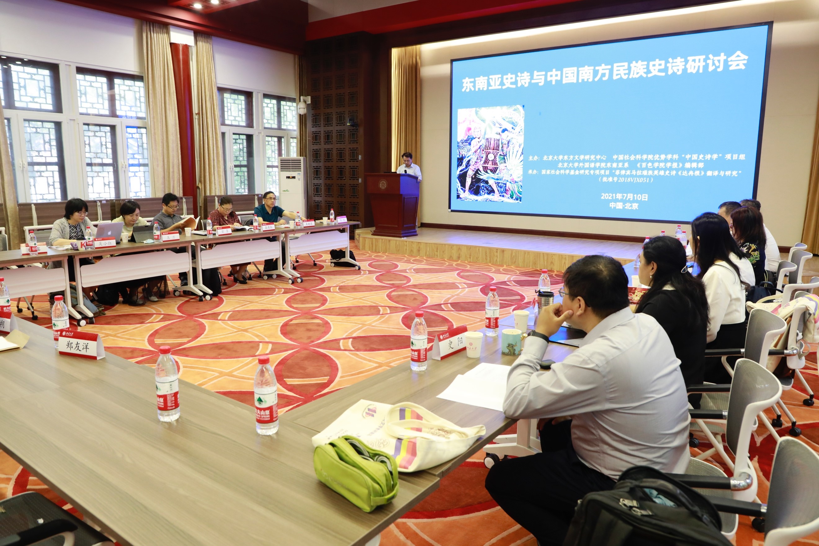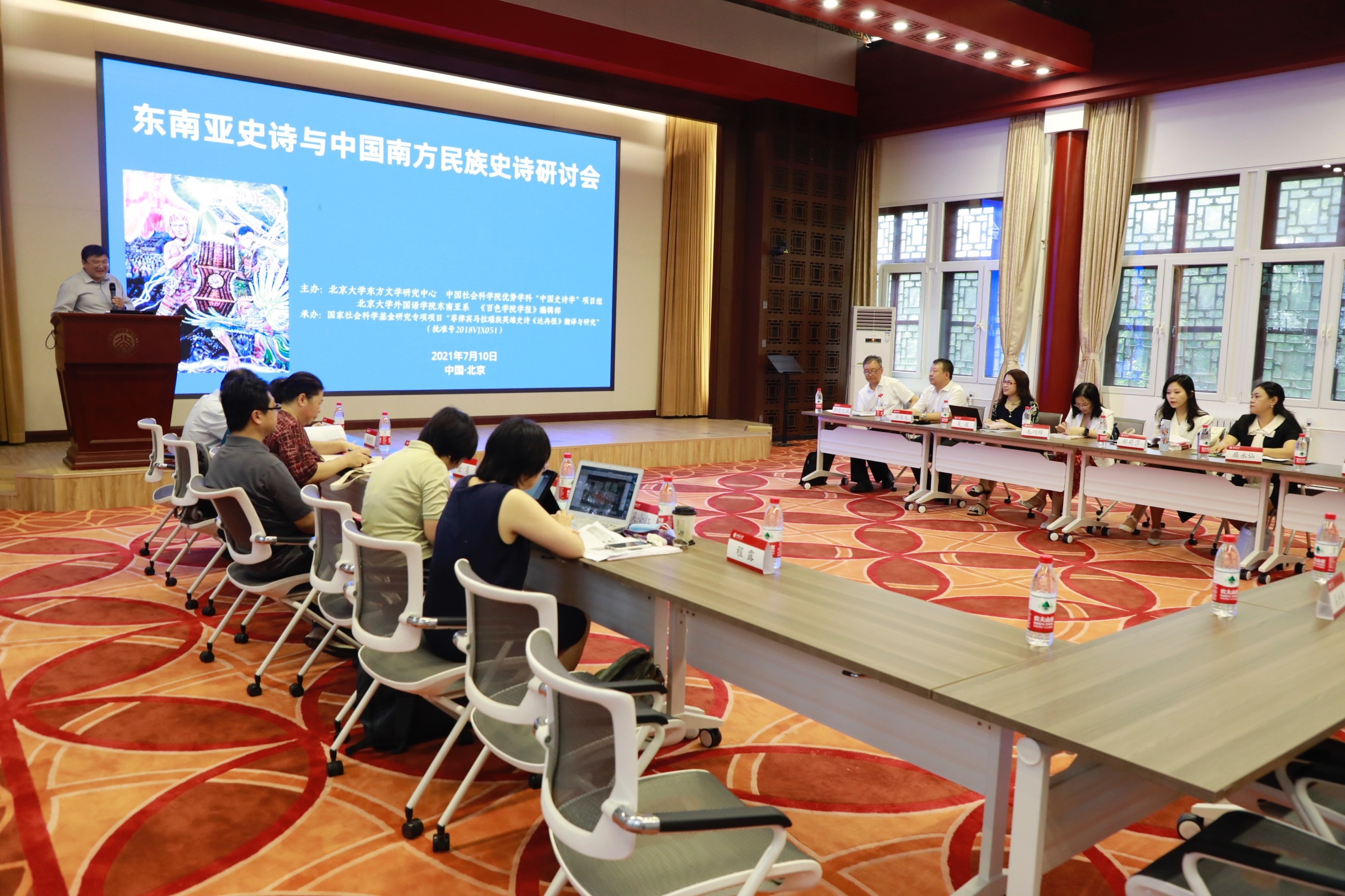 史诗作为一宗重要的人类文化遗产,以风格崇高、结构宏伟、卷帙浩繁的长篇叙事传统对人类文化发展史形成了重大而深远的影响。2021年7月10日,由北京大学东方文学研究中心、中国社会科学院民族文学研究所主办,乐鱼·体育东南亚系、《百色学院学报》编辑部承办的“东南亚史诗与中国南方民族史诗研讨会”在北京大学以线下、线上同步进行的方式召开。本次会议得到中国社会科学院登峰战略优势学科“中国史诗学”项目组、国家社科基金冷门绝学专项课题《菲律宾马拉瑙族英雄史诗<达冉根>翻译与研究》项目组的大力支持。来自北京大学、中国社会科学院、云南社会科学院、《百色学院学报》的专家、学者们汇聚一堂,就东南亚史诗与中国南方民族史诗的诸多问题展开了深入讨论和交流,北京大学东方文学暑期学校学员也积极在线观摩,实时在线人数达260余人。