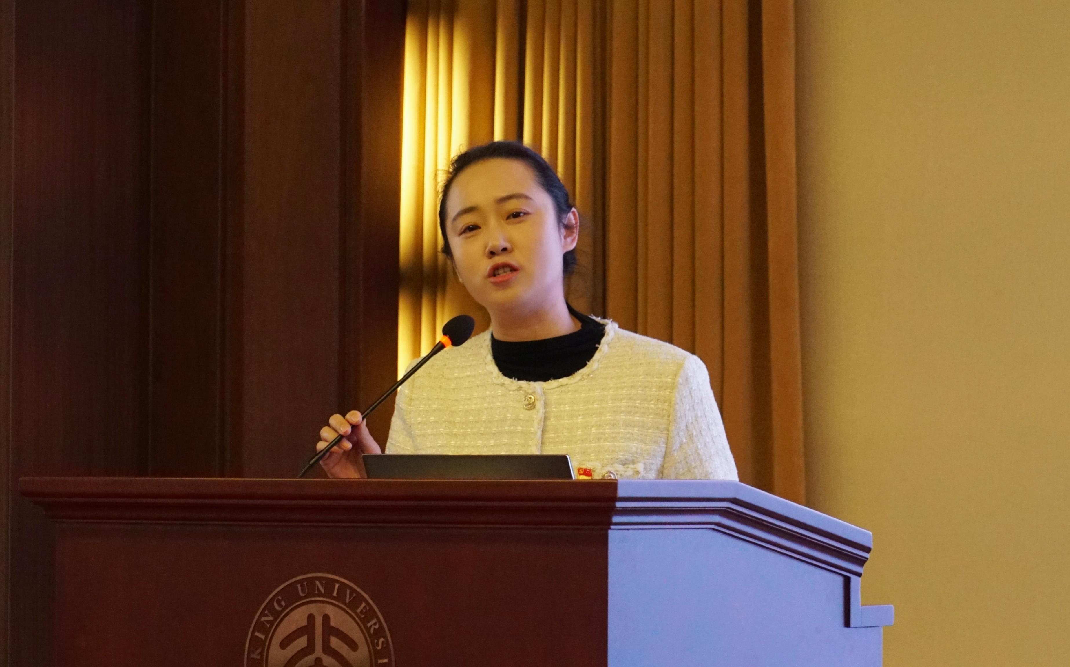 开闭幕式演职人员、2020级本科生王心怡代表外院演职人员发言。她细数排练期间的汗水与喜悦,深情讲述了“冬奥蓝”与“北大红”的交融。开幕式演出是冬奥的第一张名片,她表示要尽己所能,让全世界看到中国蓬勃向上的体育精神与包容多元文化的开放姿态。