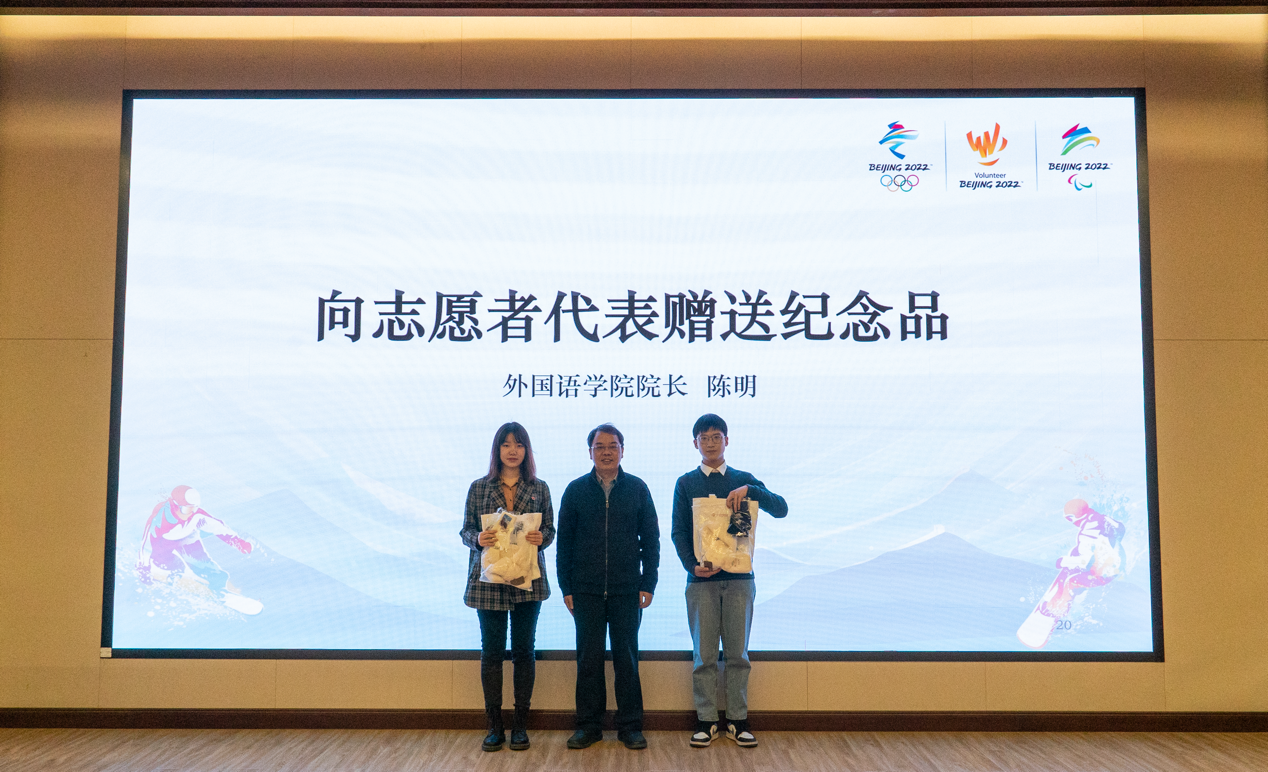 乐鱼·体育院长陈明向志愿者代表赠送纪念品。学院一直高度重视对志愿者的关心关怀,为志愿者定制了冬奥志愿者专属纪念品。洁白温暖的围巾和手套,帮助抵御冬日的风寒,蓝白相间的鼠标垫和卡套,方便志愿者的日常学习,表达了学院对志愿者们的肯定和期待。