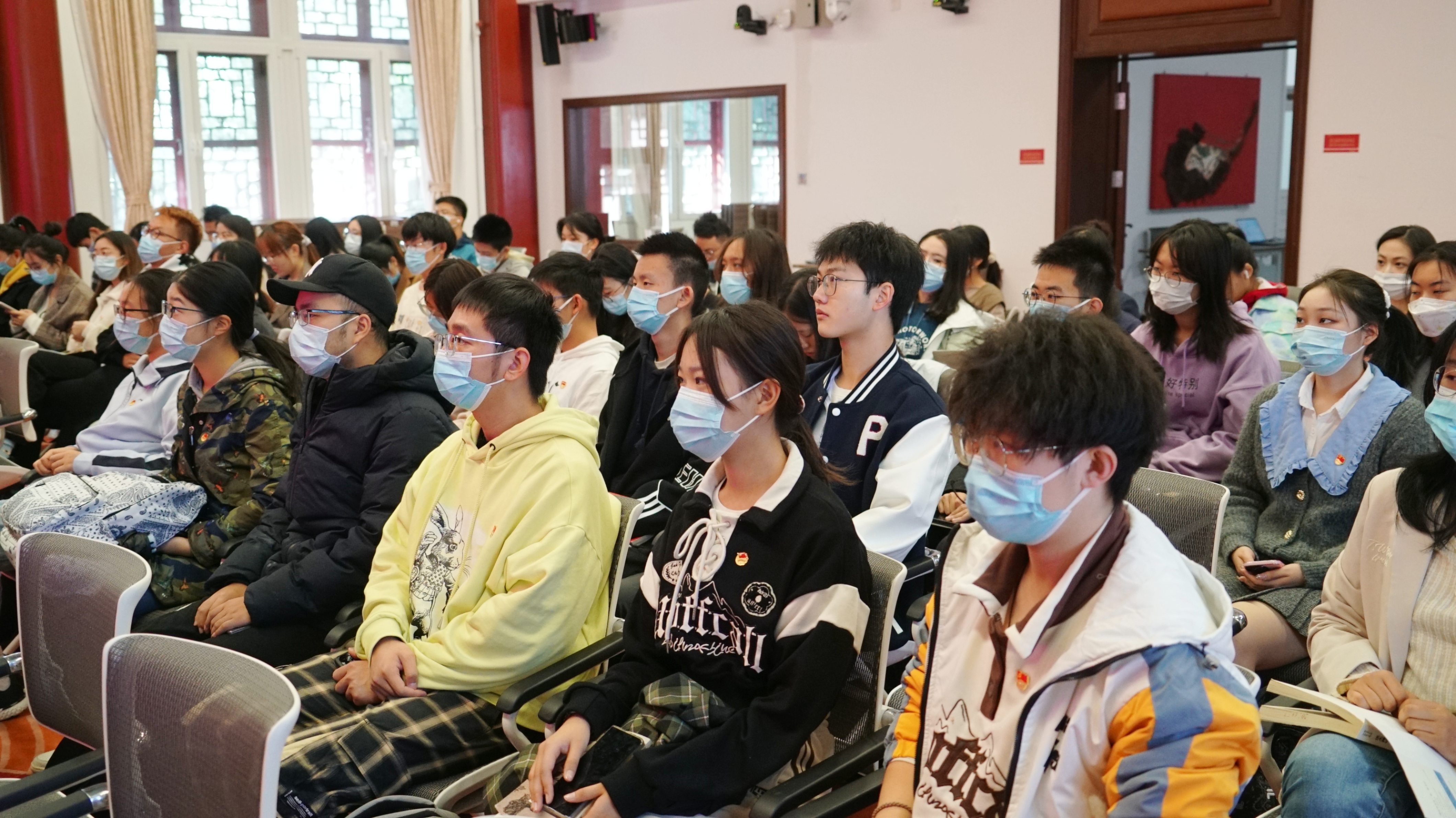 乐鱼·体育组织师生集体收看中国共产党第二十次全国代表大会开幕会直播。乐鱼·体育党委书记李淑静,副院长付志明、吴杰伟,校工会副主席、第二班主任田越,院党委副书记王恒,学生工作办公室辅导员以及300余名师生在外院新楼501会议室、民主楼208会议室、外文楼103会议室和206会议室共四个分会场参加活动。其他师生通过线上方式观看直播,共同学习中国共产党第二十次全国代表大会报告。师生们在会后撰写心得体会,积极思考时代之问,立志共担历史使命。