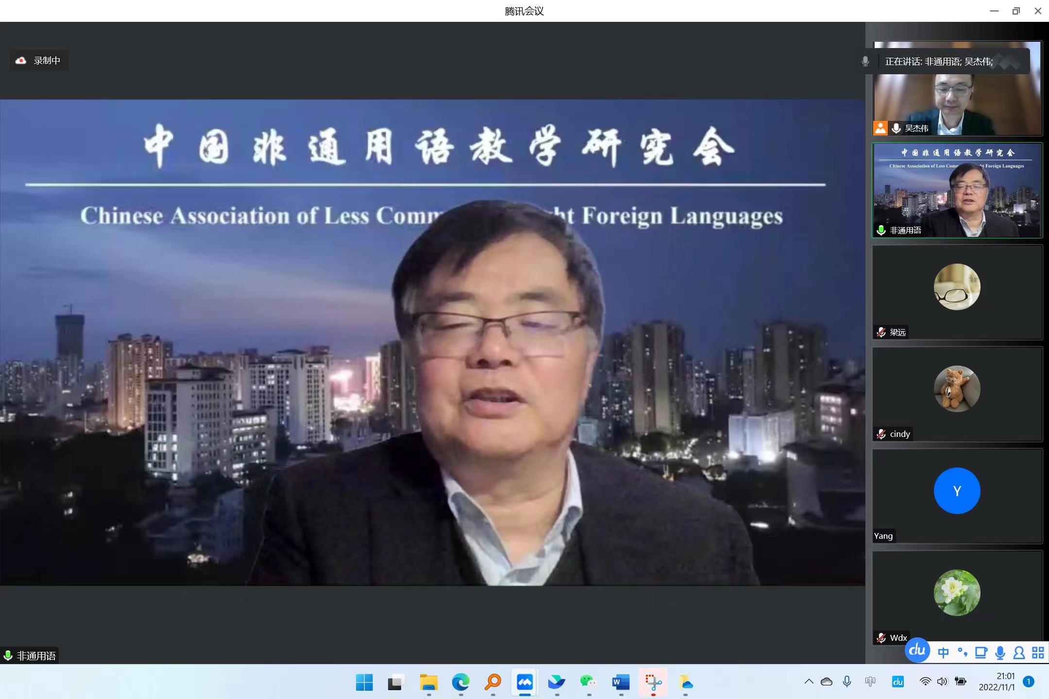 11月1日,“中国非通用语高等教育发展历程与非通用语学科发展新趋势”讲座在线上顺利举办。本次讲座由北京大学外语非通用语本科人才培养基地主办,邀请信息工程大学钟智翔教授作为主讲人,吴杰伟教授主持了讲座活动。
